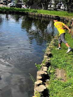 ここの公園には、鯉がいるのでエサをあげることに🐟
